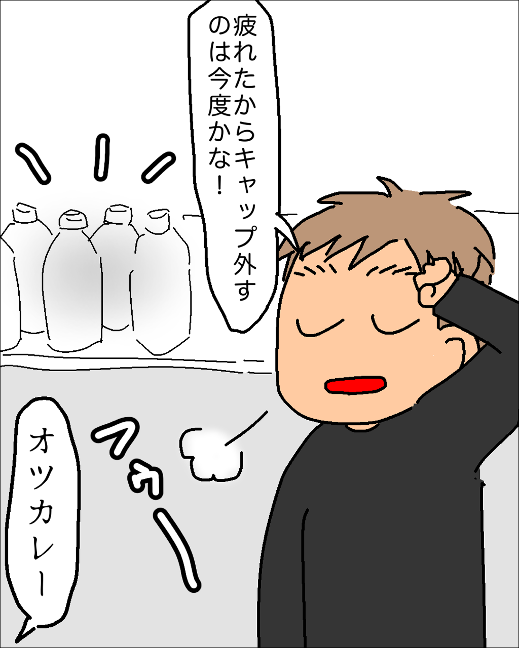 「ふぅ〜…疲れたから、キャップ外しはまた今度やる…」とのこと。