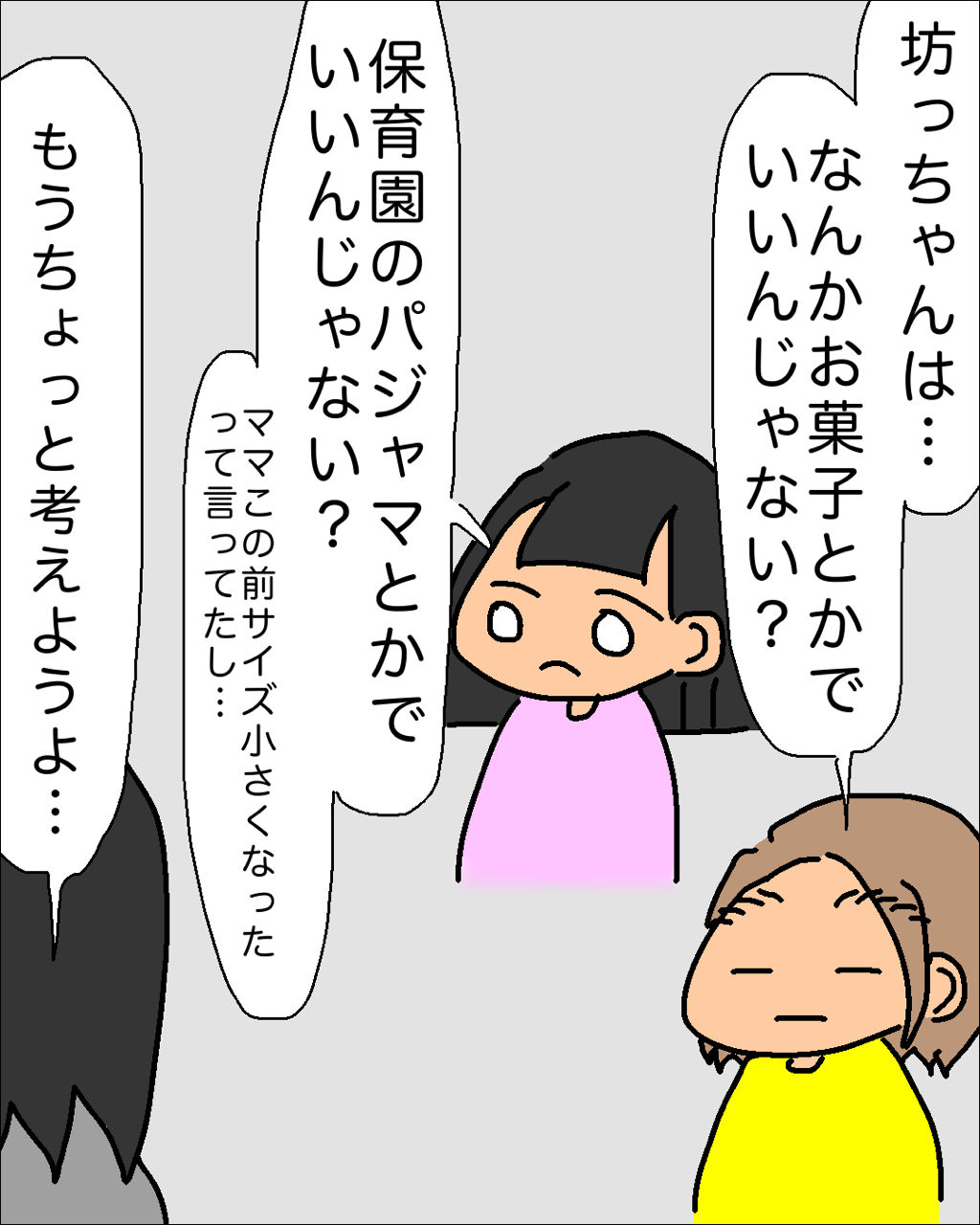 長女「保育園のパジャマとかでいいんじゃない?ママ、前にサイズ小さいって言ってたよ?」