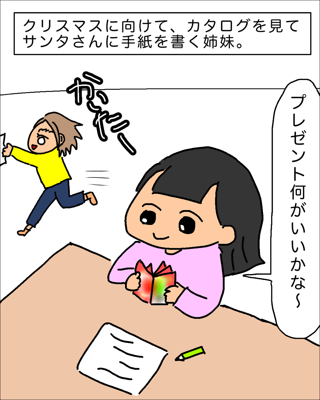 ワクワクしながらカタログを見たり、テレビで流行りのものをチェックして机に向かう姉妹…