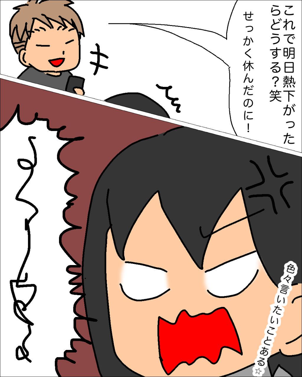 2025年11月25日 生命力吸い取ったみたいになった インフルエンザ期間、子どもたちは見事に“ほっそりモード”へ突入しました( ̄▽ ̄)パパも食欲が落ちてしまい、顔まわりが少しシャープに…そんな中、私だけはというと――すぐに熱も下がり元気に復活…したまでは良かったのですが、家から出られないストレスが爆発して暴食スイッチON。気がつけば子どもたちはスリムに、私はまるまると…なんだこれ…家族の生命力、私が吸い取った?ってくらいの差がついてしまいました笑元気になったのは何よりだけど、しばらく体重計を見る勇気はありません… タグ :#インフルエンザ#子供の体調不良#家庭内感染